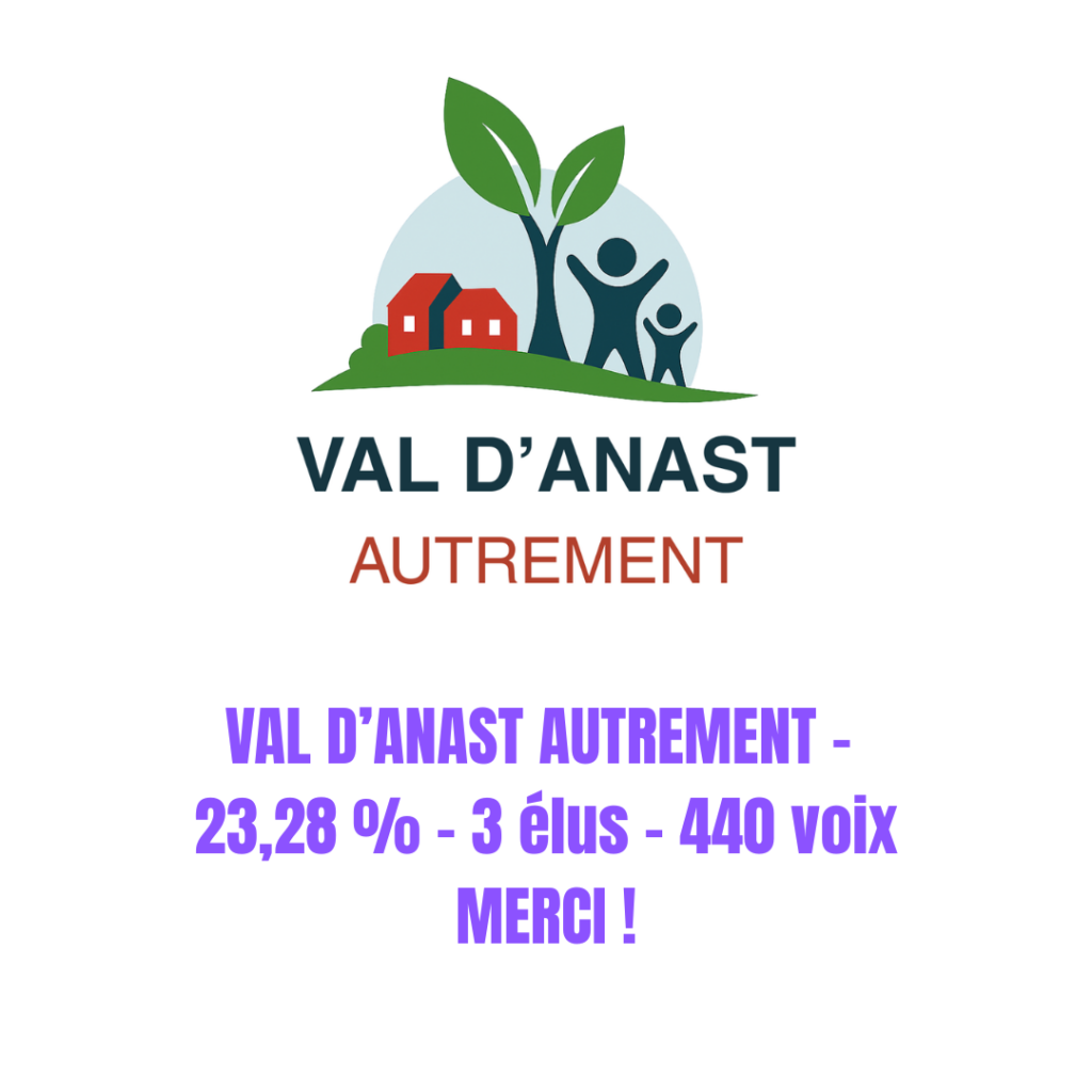 Nous voulons remercier chaleureusement les 440 électeurs qui ont choisi Val d’Anast Autrement.